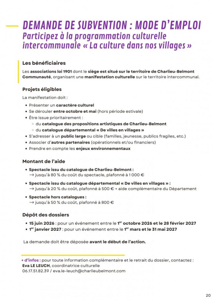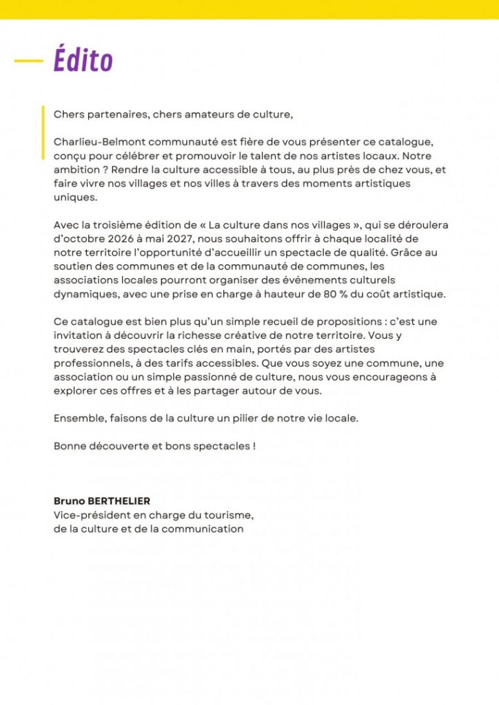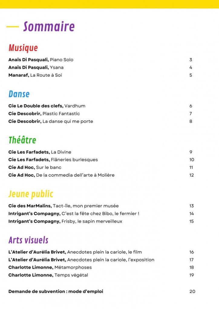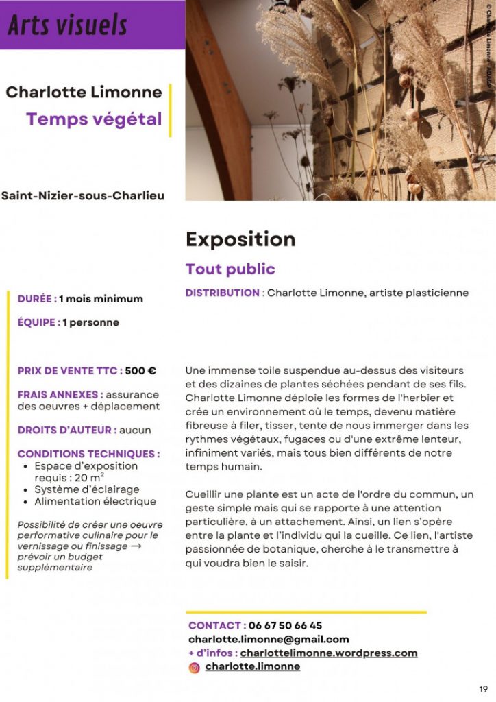 Catalogue des propositions d’artistiques Charlieu / Belmont 2026